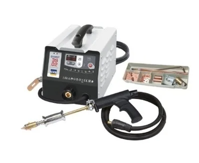 230V, 3800A steel dent remover ideal for all steel straightening and dent removal work. Easy to use thanks to its self-priming gun and intuitive control panel.